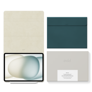 아이패드를 돋보이게 하고 싶다면 어썸디자인 오드 아이패드 폴리오 케이스를 고려해보세요. 독특한 디자인이 특징이며, 토프 그린 색상은 아이패드와 잘 어울립니다.